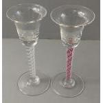 Two rather lovely hand-made twisted stem liqueur glasses, each approx 16cm high