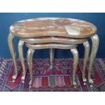A set of unusual onyx style nest of tables with brass style cast legs, dimensions W2ft x D14"