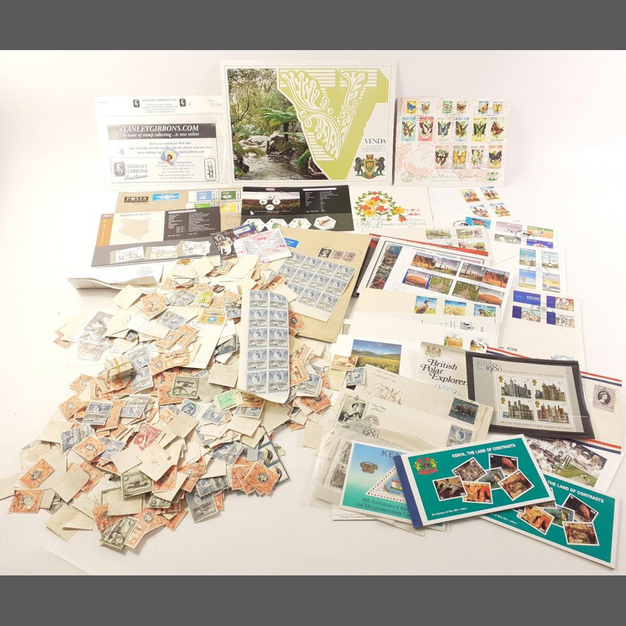 A super collection of largely KENYA and other East Africa stamps to include FDCs, commemorative covers and much loose stamps. An interesting lot.