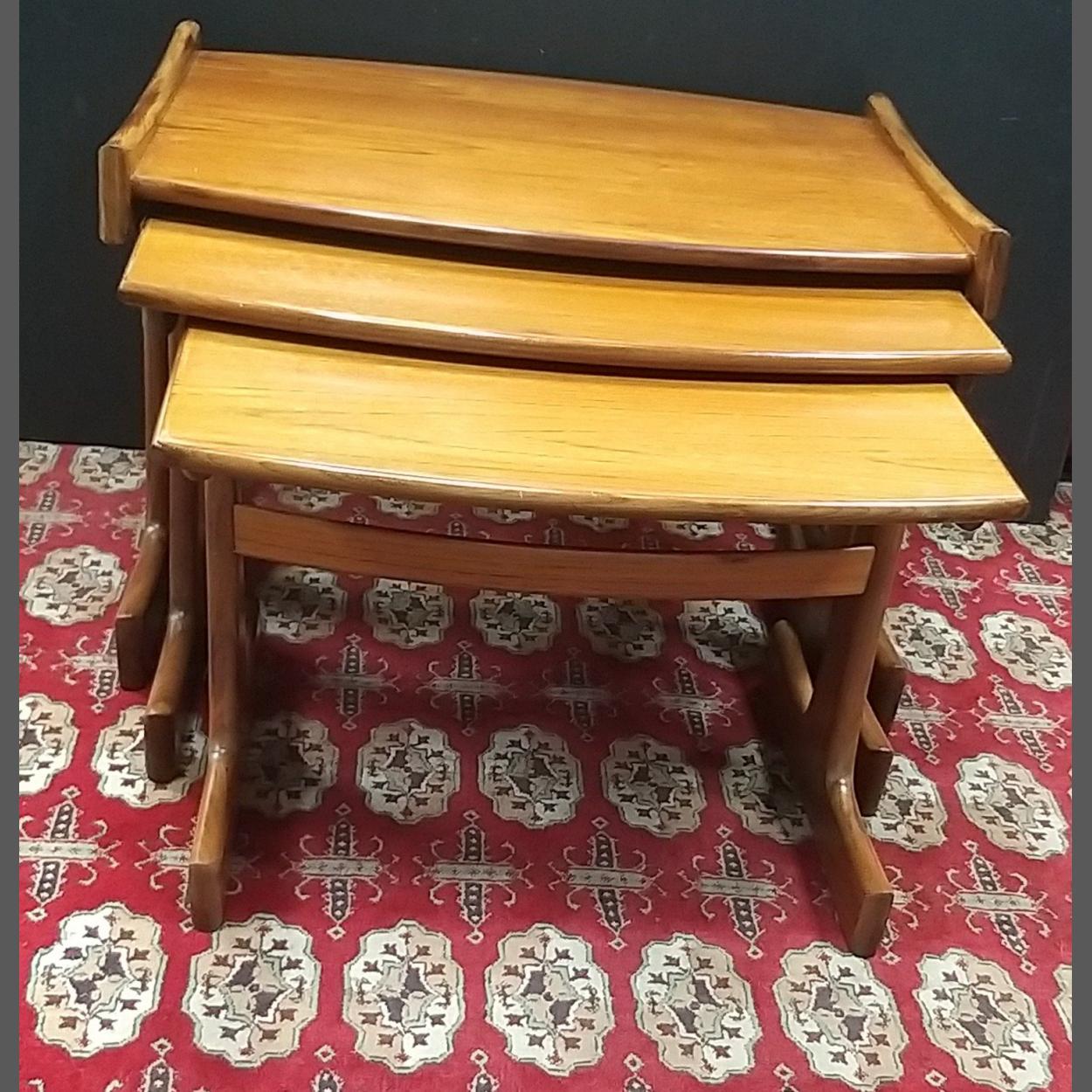 G-PLAN nest of tables. Designed by Victor Wilkins. The largest 73cm x 56cm approx. G-PLAN stamp to the base of the smaller table. All in very good useable condition.