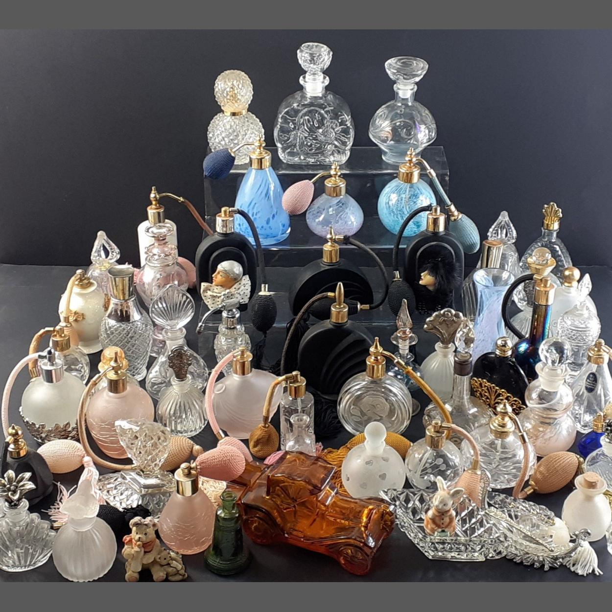 A large collection of scent bottles, atomisers and other glassware.