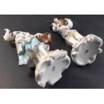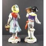 A SITZENDORF grape seller (V20787) standing 21cm tall approx plus a girl with flower basket (V20788). No damage to either figure.