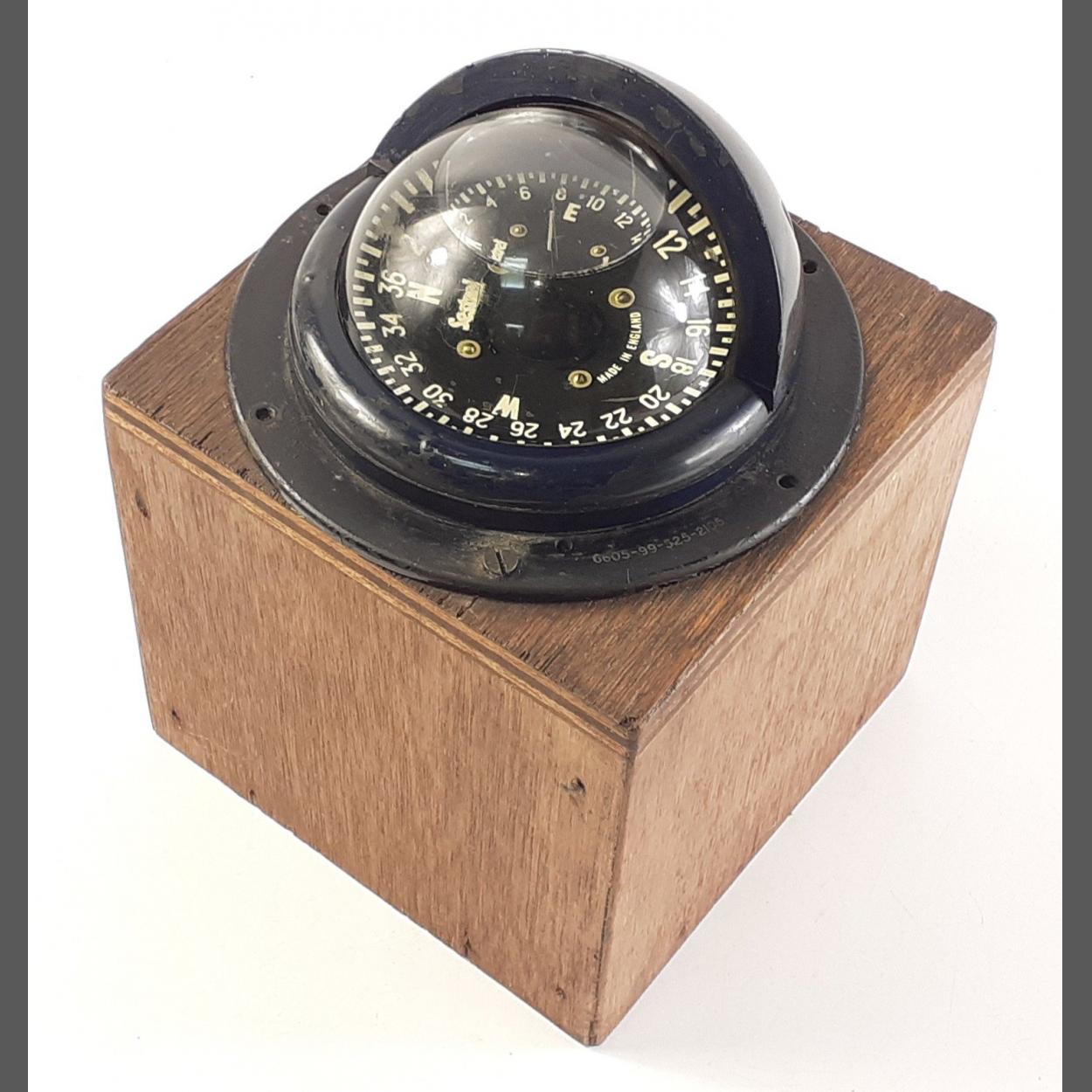 A SESTREL, Henry Browne & Son binnacle compass mounted onto a wooden block. 14cm approx. In good condition.