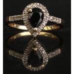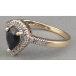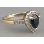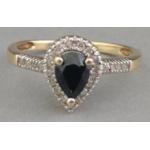 A 375 stamped (indistinct) ring, Size P, gross weight 2.15g approx. With pear shape central stone and diamond chips. An attractive ring in nice clean condition.