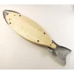 An unusual and substantial wooden and steel serving platter. Measures an impressive 90cm long