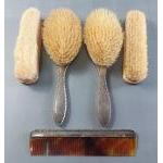 A five piece monogrammed silver hallmarked (Birmingham 1938) dressing table set comprising 2 brushes, 2 clothes brushes and a comb