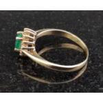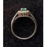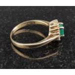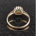 A 375 stamped ring with central emerald surrounded by small diamonds. Size M, Gross weight 1.85g approx.