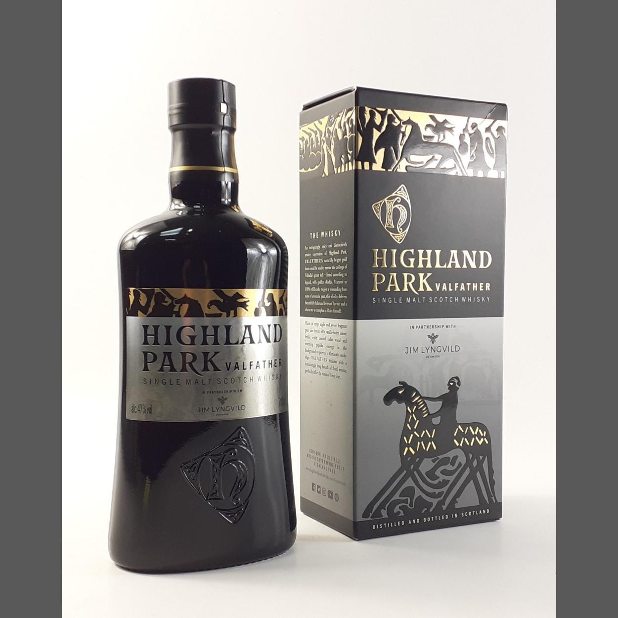 A boxed 700ml bottle of HIGHLAND PARK VALFATHER single malt Scotch whisky in partnership with JIM LYNGVILD being the third in the Viking Legend series.