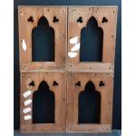 Four antique wooden panels removed from a church. Each measures 63 x 46cm approx. Would make interesting mirrors or shelf dividers.