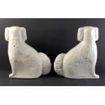 A very attractive pair of large Staffordshire King Charles Spaniel ''WALLY DUGS''. Particularly well sculpted with curled tails, glass eyes and gilt and coloured highlights. Each 32cm tall and in lovely condition with a couple of expected light firing crack but no chips, cracks or repairs. A beautiful pair!