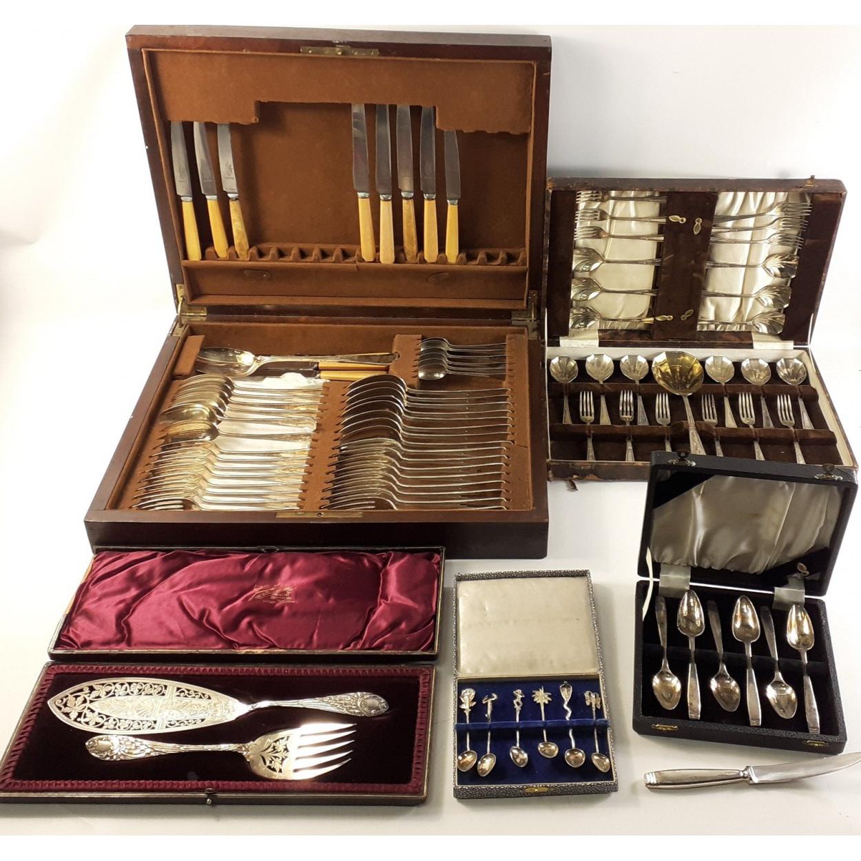 A box containing boxes of cutlery to include part and full set. Some nice quality pieces.