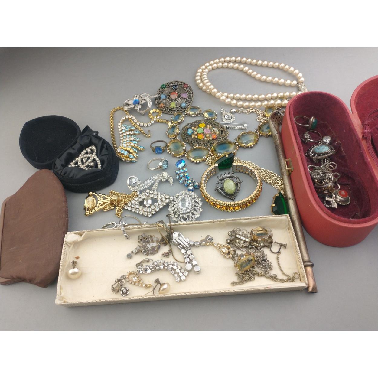 A collection of pretty and wearable BLING jewellery a Miracle Brooch, three silver rings, pretty pendants and and much more.