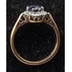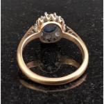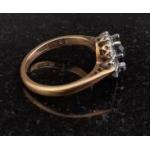 A 9ct ladies dress ring with attractive blue central stone with circle of eight cloudy white stones. Size J. Gross weight 2.45g approx.