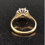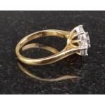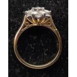An 18ct stamped ring with a floral cluster of seven central diamonds with six small shoulder diamonds. Size L/M. Gross weight 3.7g approx. All diamonds tested.