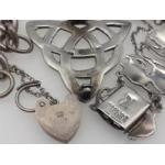 A silver collection of jewellery to include a Celtic knot brooch with Edinburgh hallmarks, Thai silver bracelet and a silver bracelet with lock. Total gross weight 67.5g approx.