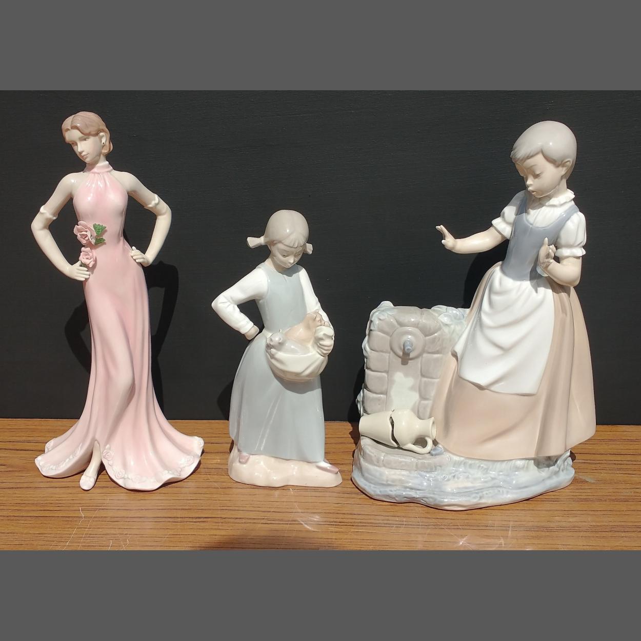 Large NAO girl with broken water jug 28cm tall missing one finger and two other figurines