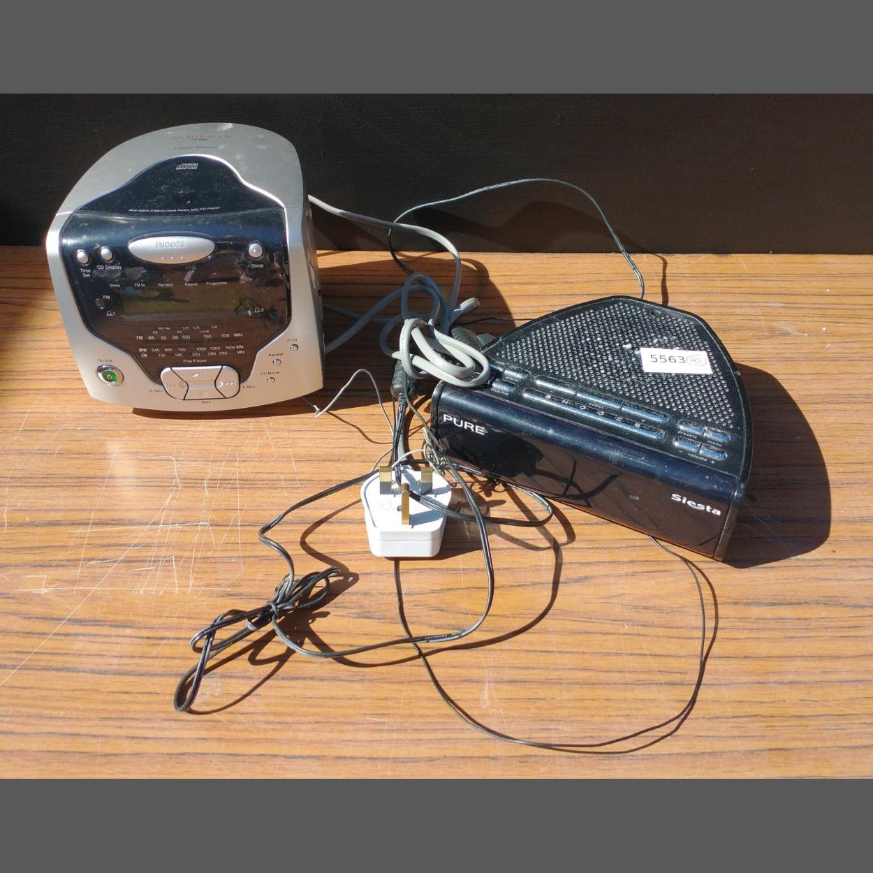 A small ROBERTS CD PLAYER/RADIO CR 9986 and alarm clock with also a PURE SIESTA DAB FM radio alarm clock both with power cables