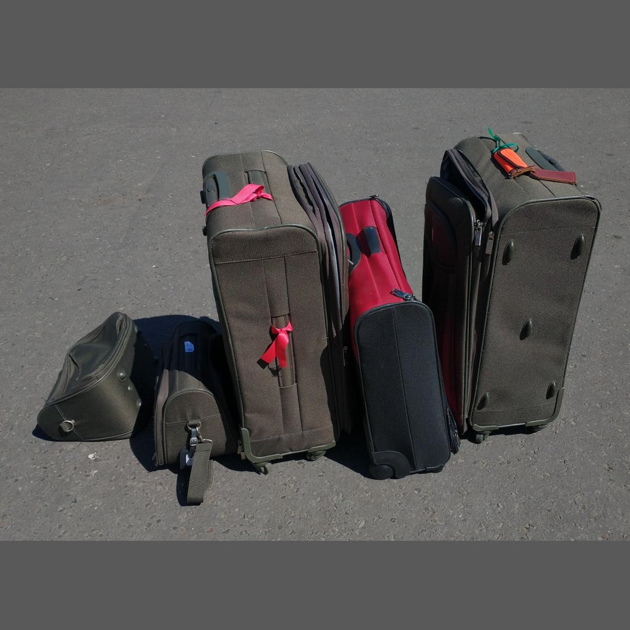 A collection of luggage pieces. To include two TRIPP roller cases each 72cm, carry on bags and a folding suit case. All in good order.