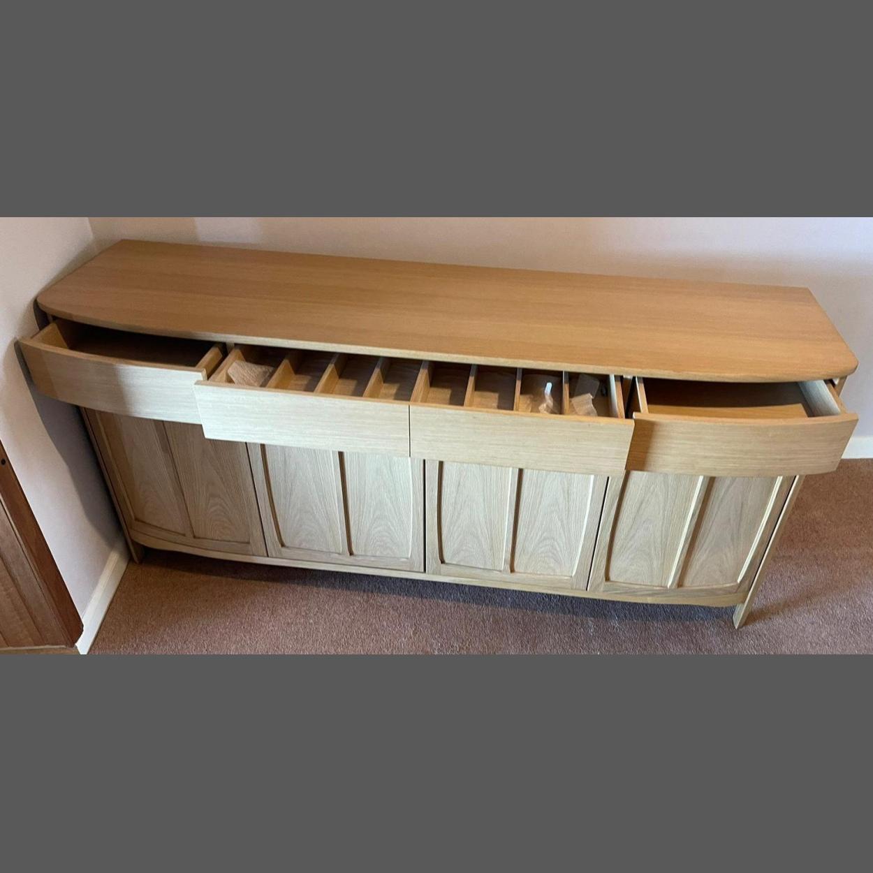 A nice YEW wood modern sideboard with 3 drawers and 4 cupboards - large central drawer fitted out for cutlery 180cm wide x depth 50cm x 80cm height approx