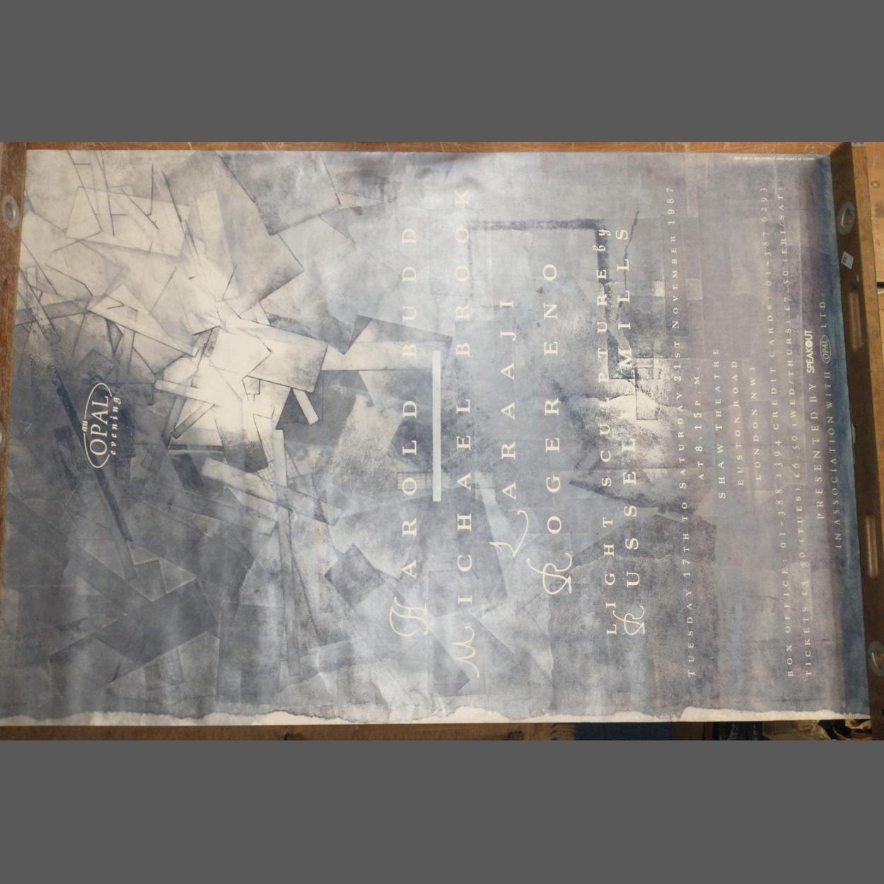 A 1987 original theatre poster. AN OPAL EVENING The Shaw Theatre. Procured by the vendor direct from outside the theatre following an evening of merriment. Large sized 150cm x 100cm