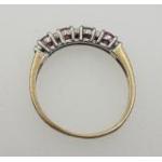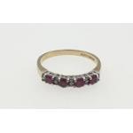 A ladies gold half eternity ring fully hallmarked 375, set with 4 red stones and 5 small clear stones. Size O, gross weight 2.06g approx