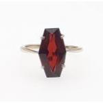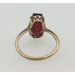 A ladies dress ring, stamped 9ct, with a dark red stone (15mm approx) size M. Gross weight 2.40g approx