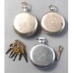 Two pocket watches c1870/80 in white metal with a SILVER hallmarked pocket watch with an outer case also hallmarked - gross weight 146g for this watch - watch was ticking away quite happily on valuation with an Ingersoll pocket watch (also ticking away quite happily on valuation) with a set of mixed watch keys