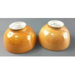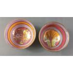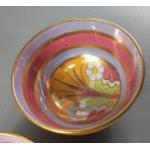 A pair of PARAGON Rainbow lustre saki dishes (rd no 716642). Diameter 8cm. Small colour defect on one.