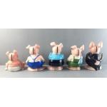 A complete set of five Natwest glazed ornamental ceramic piggy banks by WADE - no chips or signs of damage repair - tallest figure 15cm approx