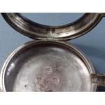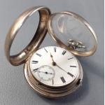 TOP QUALITY VICTORIAN LONDON SILVER HALLMARKED POCKET WATCH c1880's with outer silver London hallmarked case - no maker mark seen, looks like a beautiful inner movement with a blue jewel centre-piece - watch diameter 4cm approx - gross weight 147g approx