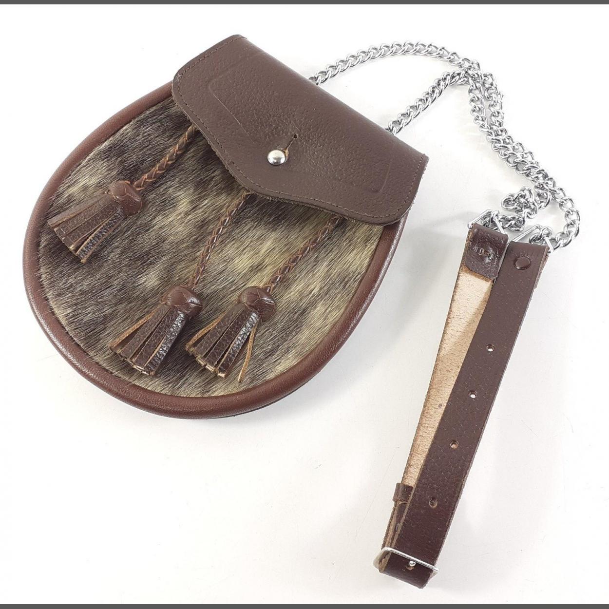 A VINTAGE leather gent's SPORRAN made Morrison of Haymarket Edinburgh - 19cm height x 18cm width approx - this item is in exceptional condition