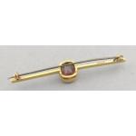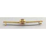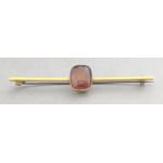 A 9ct stamped bar brooch with amber-like stone setting - length 6cm approx - gross weight 3.68g approx