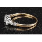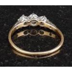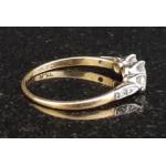 DIAMONDS ARE A GIRLS BEST FRIEND! A SPARKLING 18k and PLAT stamped triple mounted diamond ring with the larger sparkling diamond centred flanked with two medium diamonds - larger diamond 4mm diameter and the other two 3mm diameter approx - gross weight 2.13g approx