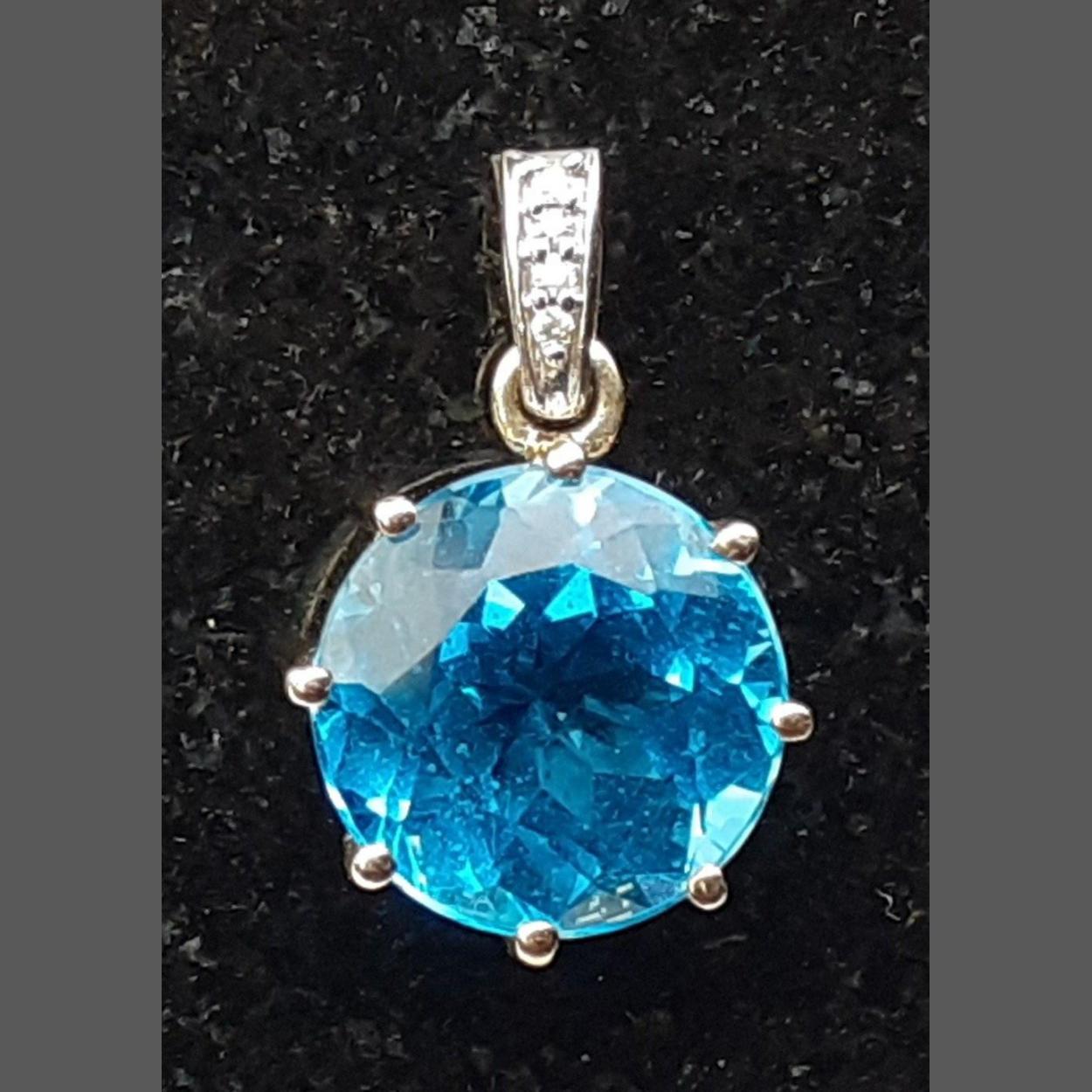 A 10k/375 stamped Jaipur Indian BLUE SPARKLING SAPPHIRE (diameter 1cm approx) pendant with tiny chipped white stones on the link - gross weight 2.91g approx