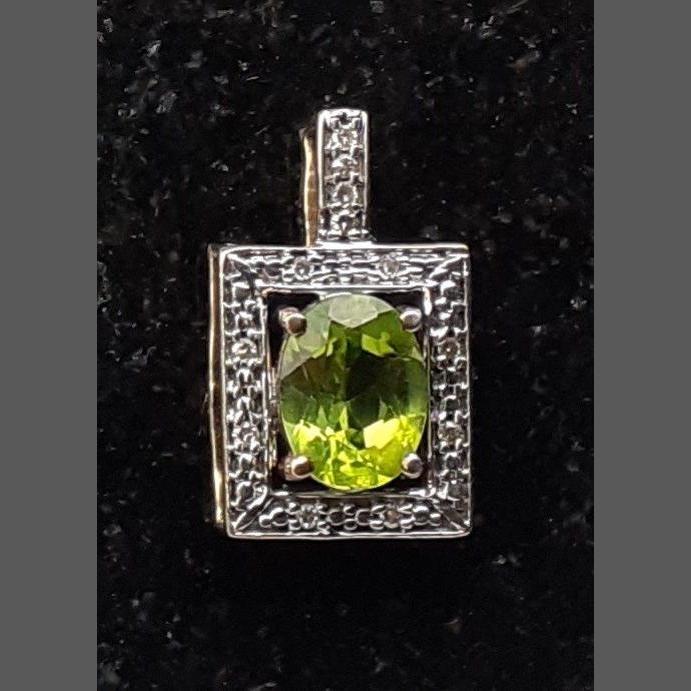 A 375 stamped Jaipur Indian GREEN SPARKLING oval-cut EMERALD in a square setting (diameter 0.8cm height x 0.5cm width approx) pendant with tiny chipped white stones framing it - gross weight 1.61g approx