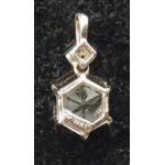 A 10k stamped Jaipur Indian CLEAR SPARKLING hexagonal-cut GEM STONE (diameter 0.9cm approx) pendant with tiny chipped white stones on the link - gross weight 1.38g approx