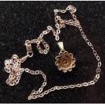 A 375 stamped round floral form pendant with a yellow stone centred with surrounding sparkling stones depicting petals - gross weight 1.69g approx - diameter approx 1.3cm with a small gilt 925 stamped neck chain 45cm length, approx weight of chain 1.70g approx