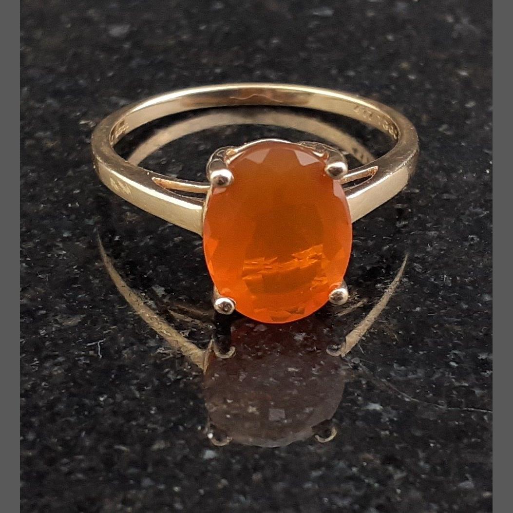 OPULENT ORANGE MADEIRA CITRINE - 10k/375 stamped JAIPUR precious oval-cut madeira citrine ring - dimension 0.9mm x 0.7mm diameter approx - ring size N, gross weight 1.82g approx