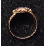 ALMOST REGAL LOOKING! - An indistinct stamped yellow metal ring with pink and pearl like stones - 1st number is clearly '1', then 2nd letter is unclear - ring size Q - gross weight 1.25g approx