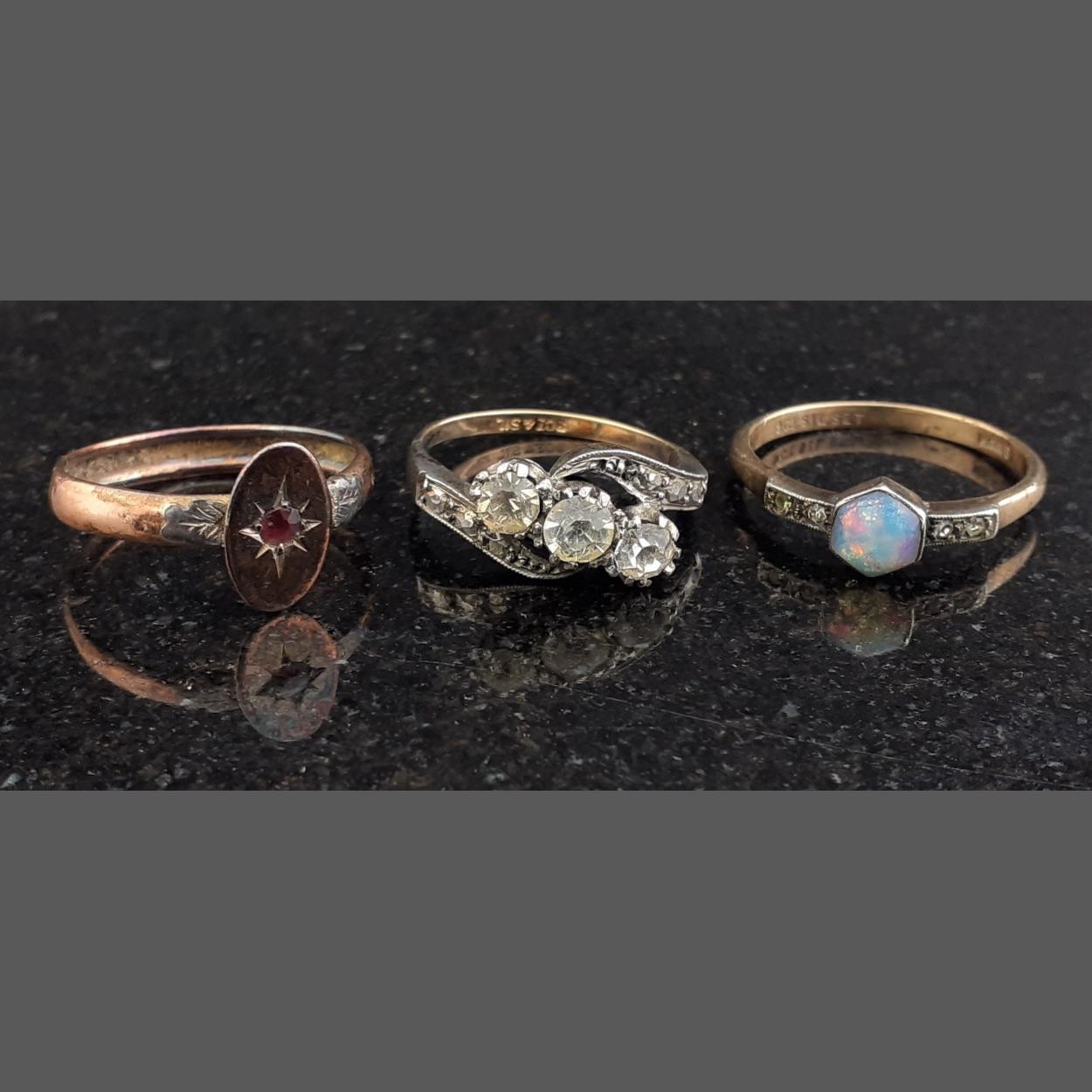 SIL SET stamped ring with an opal stone setting 1.80g ring size O - weight gross 1.82g approx with 2 other costume rings ring sizes O and P