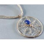 SPIDERS WEB - A fabulous 925 stamped spider's web with blue stone body pendant and unusual multi-stranded necklace still in its jeweller's presentation box, gross weight 16.5g approx