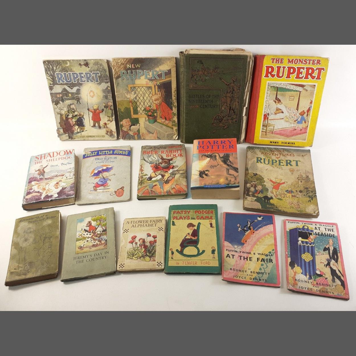 A small collection of vintage children's books mostly in poorly stored condition to include Enid Blyton, Rupert the Bear etc