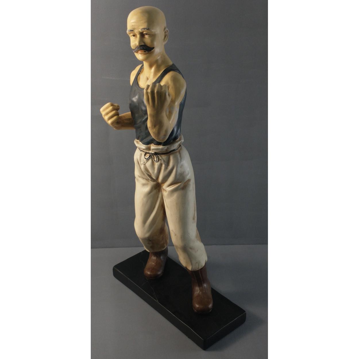 A large pottery boxing figure - this was in a pub for many years - there is a historical repair to the base, height 58cm x 28cm base width x 11cm depth approx