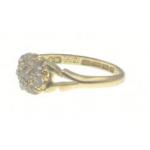 A nice 1914 18ct stamped DIAMOND (tested) engagement ring that was bought but the lady's fiancé was killed in WWl - a sad story - the lady owned a dept store in Glasgow which was later sold to to HUGH FRASER of FRASER'S - ring size K, gross weight 2.60g approx - nice quality diamonds (tested) - 7 smaller diamonds surrounding a larger centred diamond