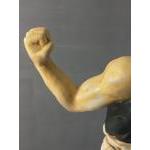 A large pottery boxing figure - this was in a pub for many years - there is a historical repair to the base, height 58cm x 28cm base width x 11cm depth approx