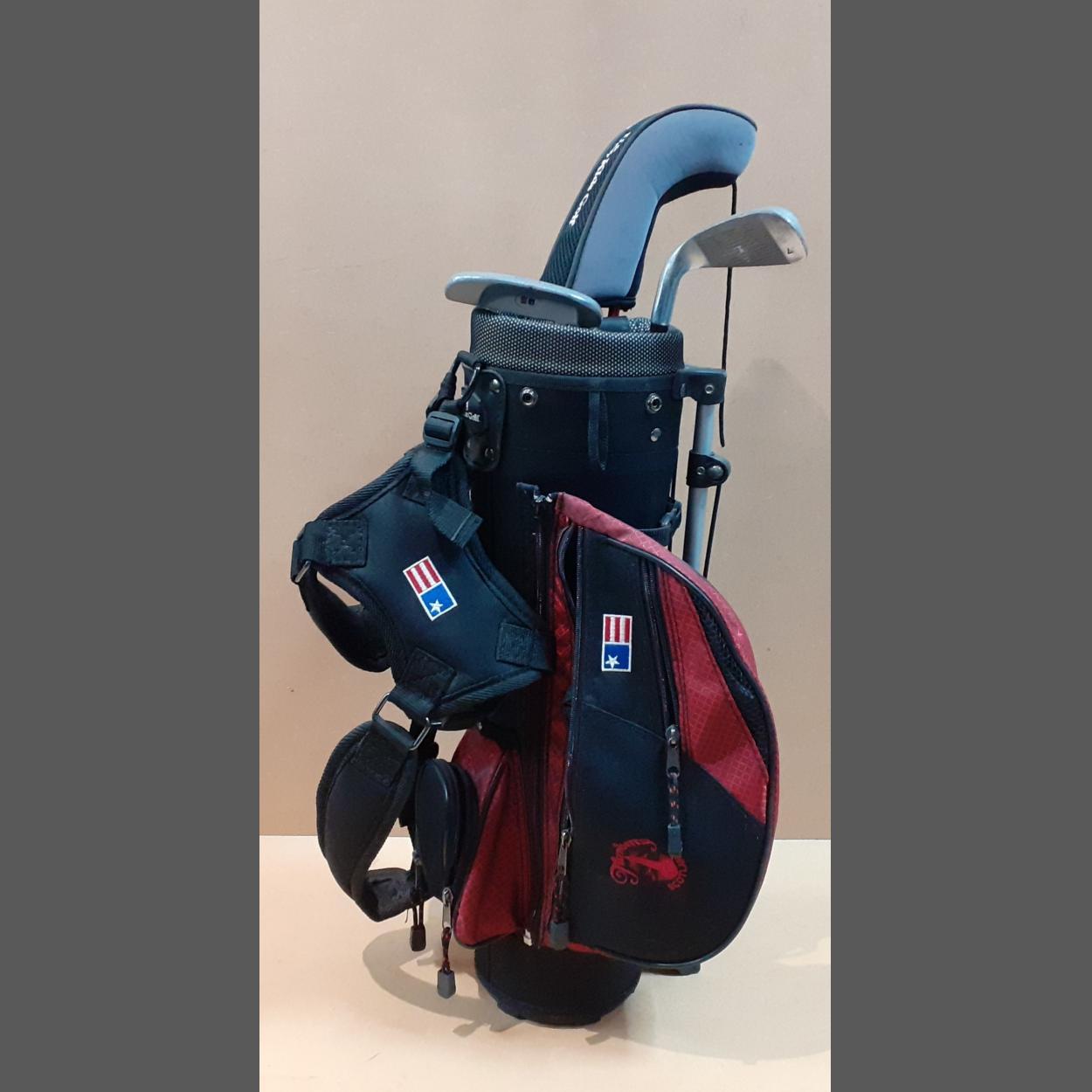 A child's golfing bag with clubs by US KIDS GOLF