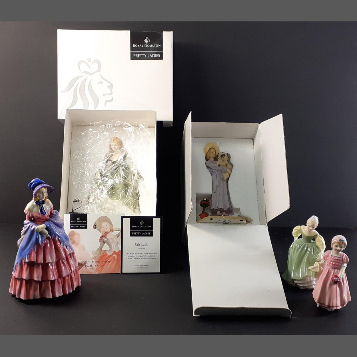 ROYAL DOULTON ladies to include A Victorian Lady (HN728), Fair Maiden (HN2211), and a small girl. Plus 2 boxed figurines - Companions 'Last Outing Before Bedtime' (2003) and Pretty Lady -Fair Lady (HN4719). No damage noted