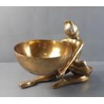 A brass ballerina supporting a round bowl. Stands approx 18cm high, bowl diameter 13cm approx