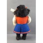 Unusual STEIFF Molli Dolli and peg doll, both with Steiff buttons. The peg doll is missing its right arm. Doll stands 20cm tall approx. The certificate is present.