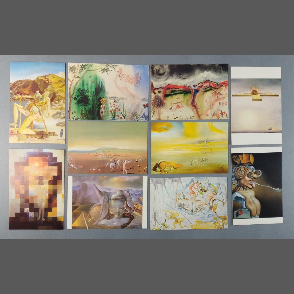 A collection of 10 SALVADOR DALI postcards (all unused) to include El Carro De Bacus, Picasso's portrait of the Glory of the Sun, Le Printemps, L'Hiver, The Spectre Of Sex Appeal, Gala's Christ etc etc